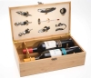 Item no.: JSBM005 Description: barware set with bamboo box for two bottles, including- 3 pcswine stoppers 1 pccorkscrew; 1 pc thermometer 1 pc wine guide; 1 pc wine ring; 1 pc cutter 1 leather box for two bottlesBox size:L35.8*W20.8*H12.1cmBamboo Barware Set bar tool set bar set wine accessories